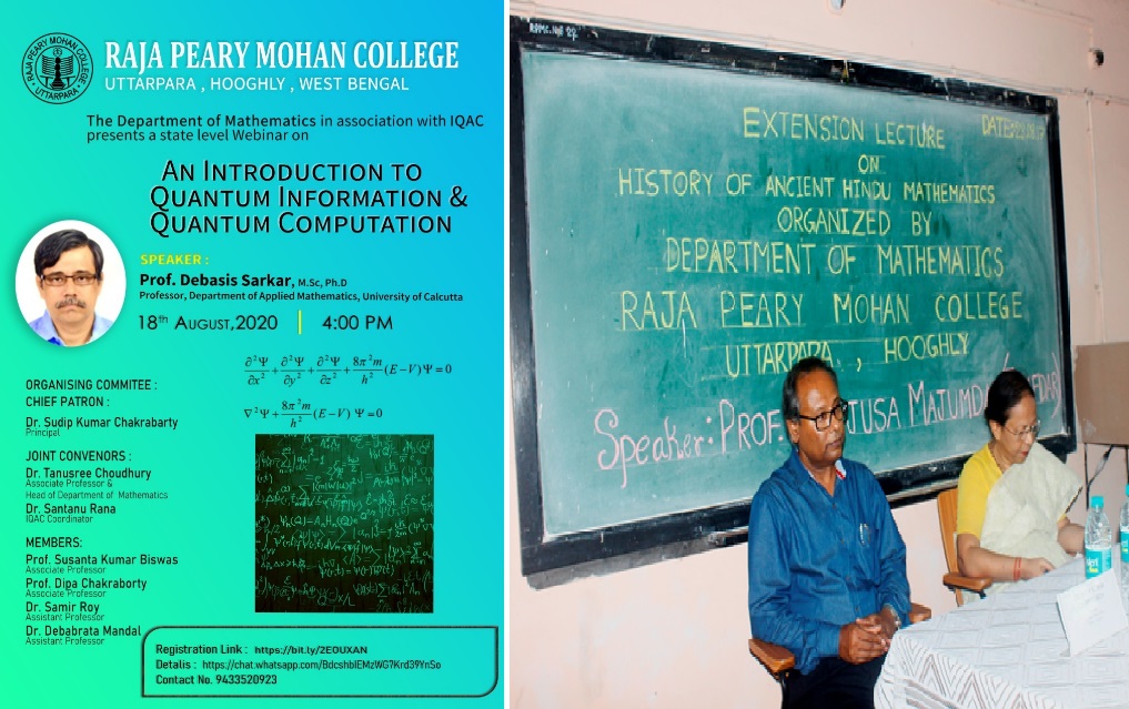 The Department of Mathematics of Raja Peary Mohan College has a glorious history with many ups and downs starting from the establishment of Uttarpara College. During the first six to seven decades from its establishment Uttarpara College functioned as an Intermediate College imparting education upto intermediate standard in Mathematics.