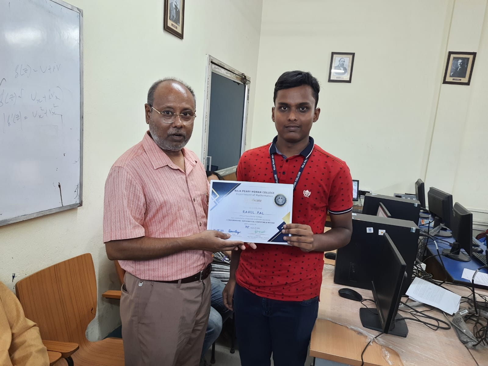 The Department in association with external expert from software industry conducts a thirty-hour course on “C Programming: Mathematical Computing & Beyond” for students on annual basis. The objective of the course is to give a thorough training on various the concepts of C and provide an exposure to its applications in different Mathematical computations and real-life scenario.